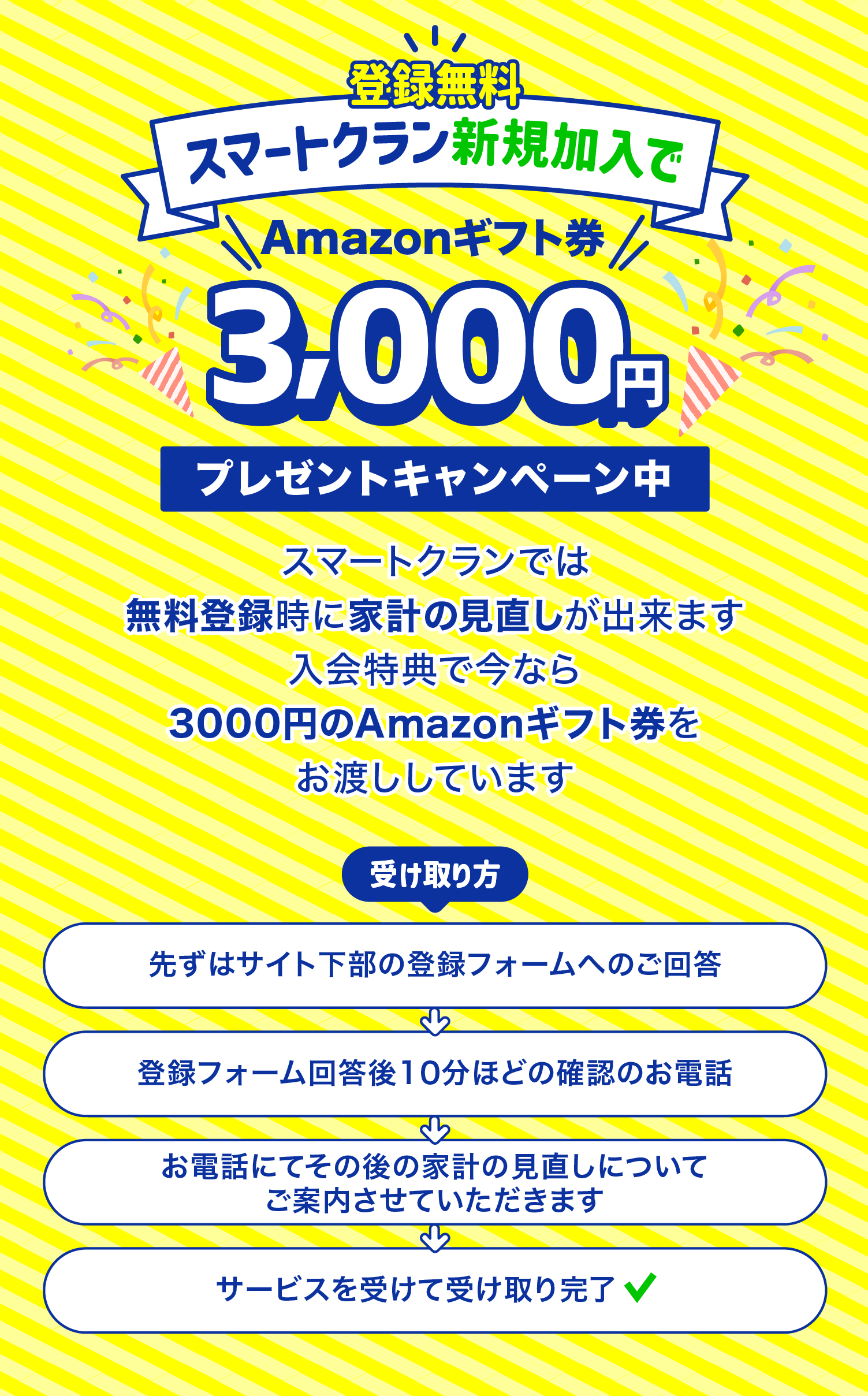 *インセンティブ付与には、スマートクランへの会員登録、ならびに家計の見直し相談が必要です。*スマートクランでは家計の見直し相談に加えて提携企業より、おトクなクーポンやサービス情報、副業の情報などをご提供いたします。